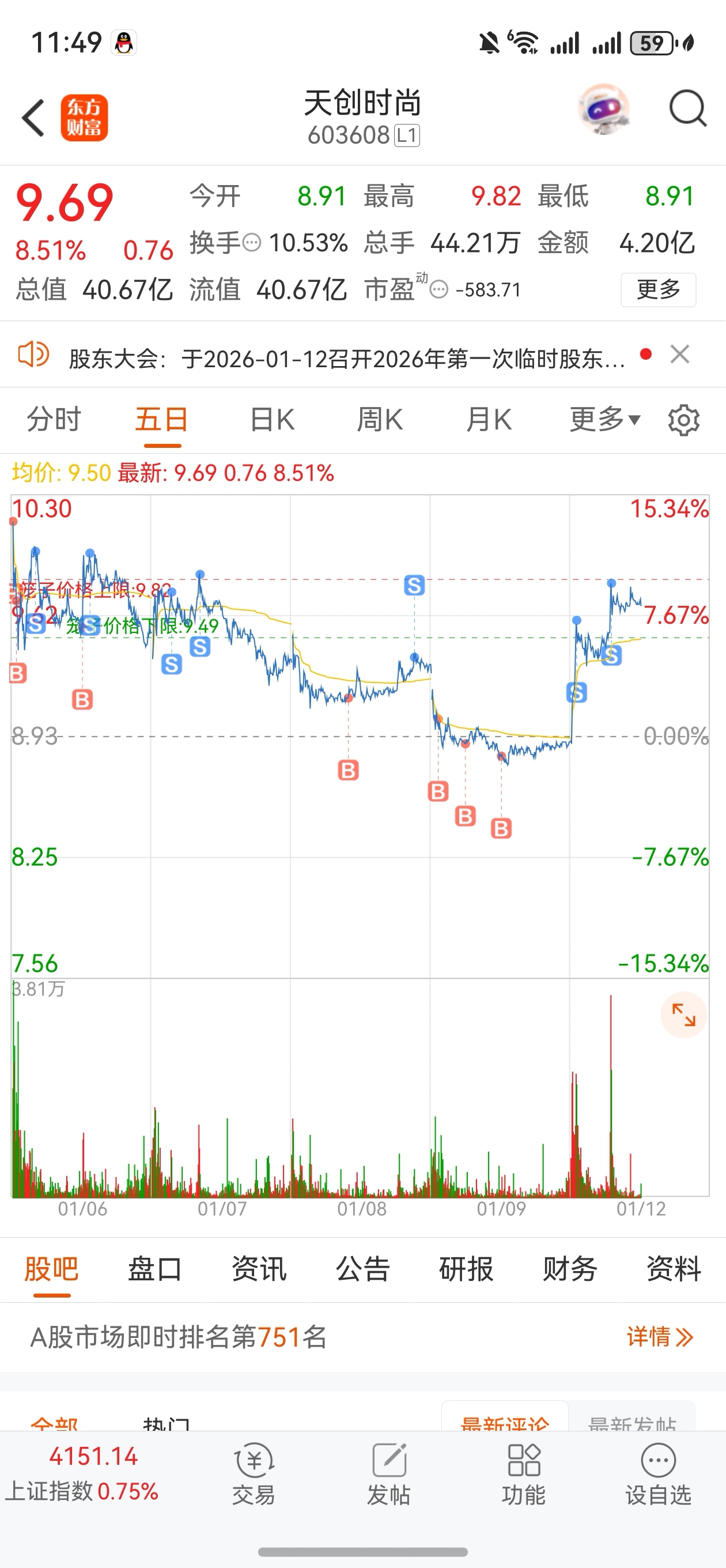 $天创时尚(SH603608)$ 主力不演了,格局大一点主力,封板我再买回来