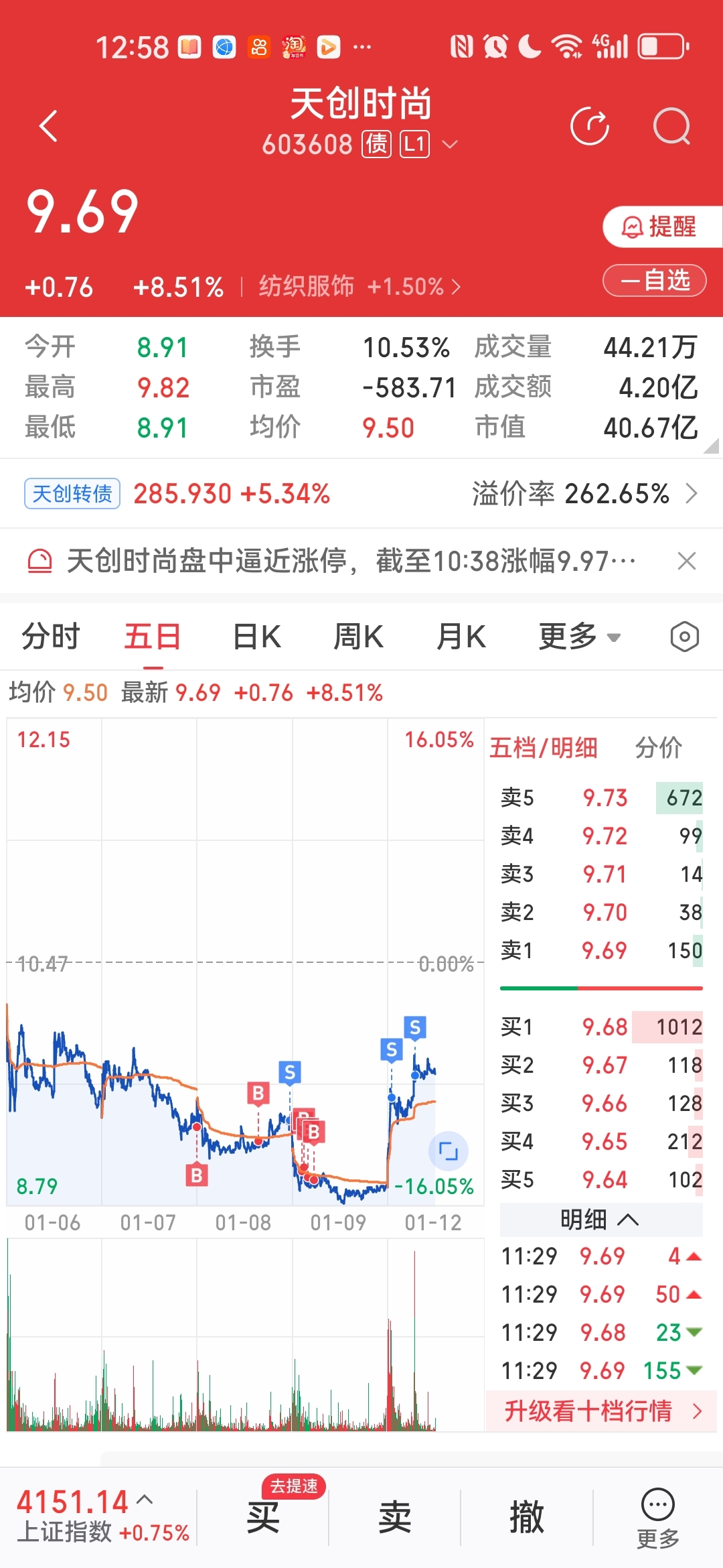 $天创时尚(SH603608)$ 牛市不套人啊!谢谢主力