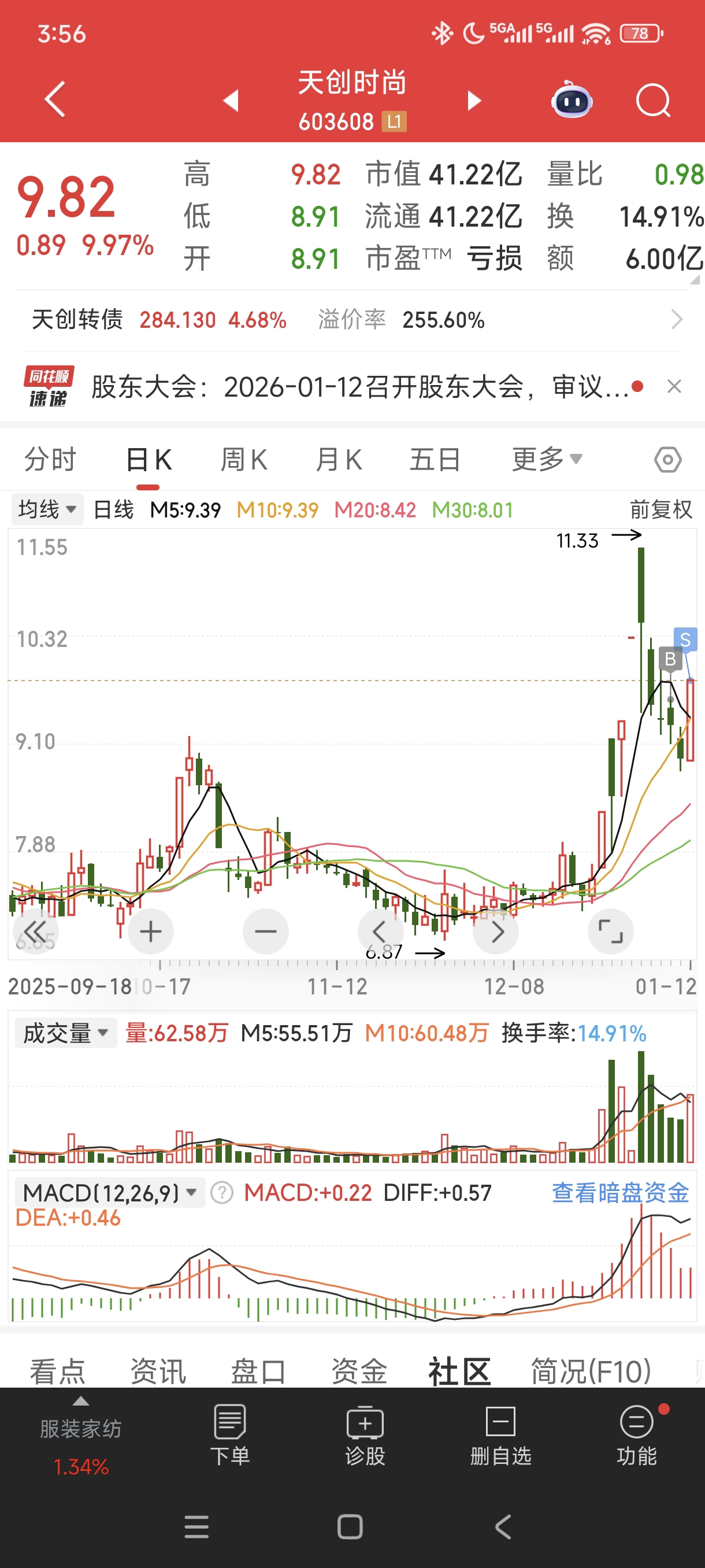 $天创时尚(SH603608)$ 赚3个点落袋为安, 或者说被洗出去了,