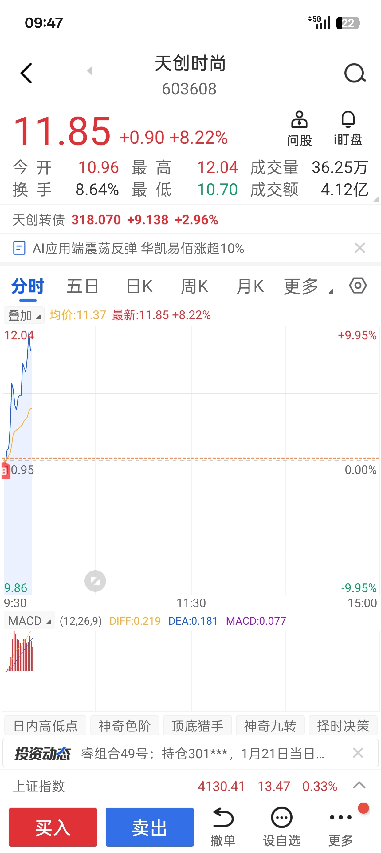$天创时尚(SH603608)$ 今天必须封板,百分之一万