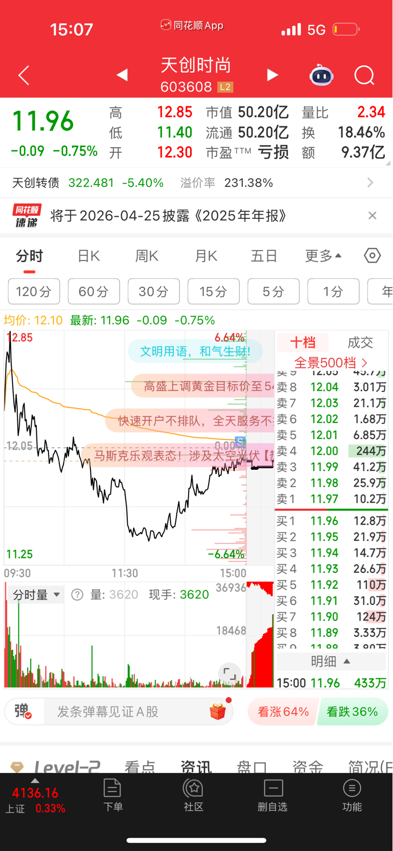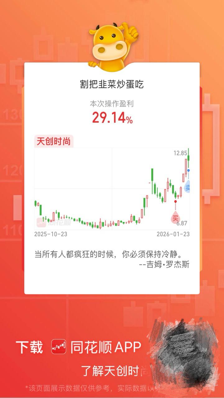 $天创时尚(SH603608)$ 有惊无险,安全下车。这笔收益还阔以