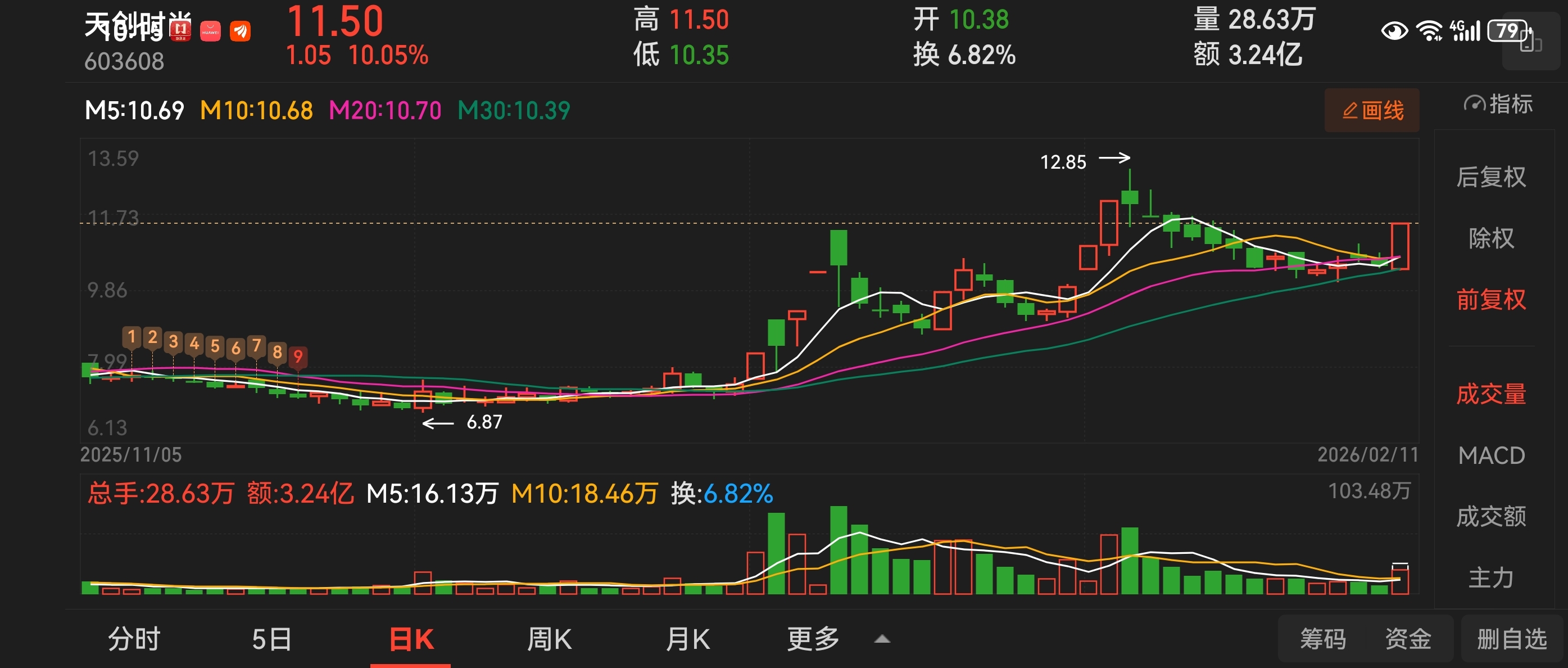 $天创时尚(SH603608)$ 2.6号分享的天创时尚涨停