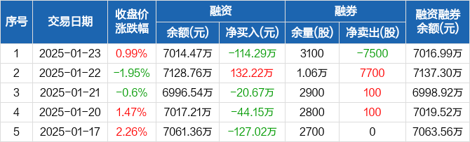 禾丰股份:融资净偿还114.29万元,融资余额7014.47万元(01-23)