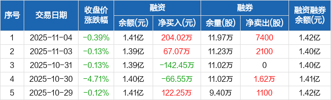 禾丰股份:融资净买入204.02万元,融资余额1.41亿元(11-04)