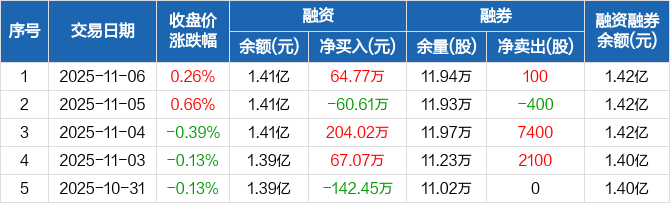 禾丰股份:融资净买入64.77万元,融资余额1.41亿元(11-06)