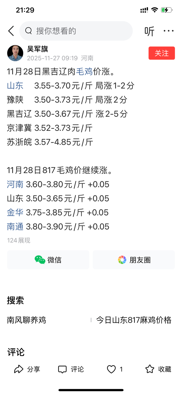 明天东北实际收鸡价可能到3.75,既然有说我是托,那大家自己上网去查下鸡肉最近的