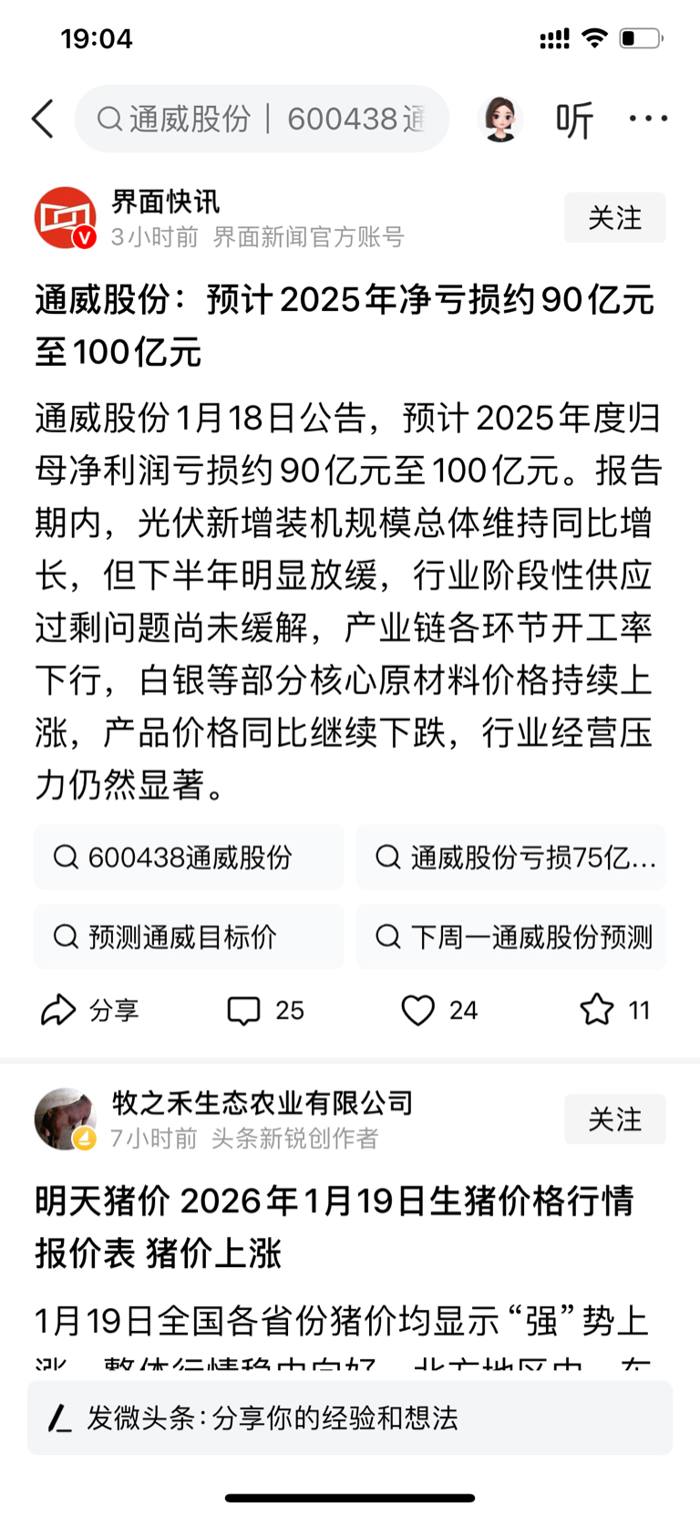 明天看看浓眉大眼得通威亏这么多会是什么走势