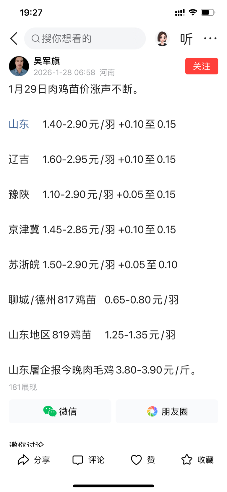 一季度养鸡企业爽翻了,辽宁明天报价4.05元。看看今年高价辽宁能否到4.4元
