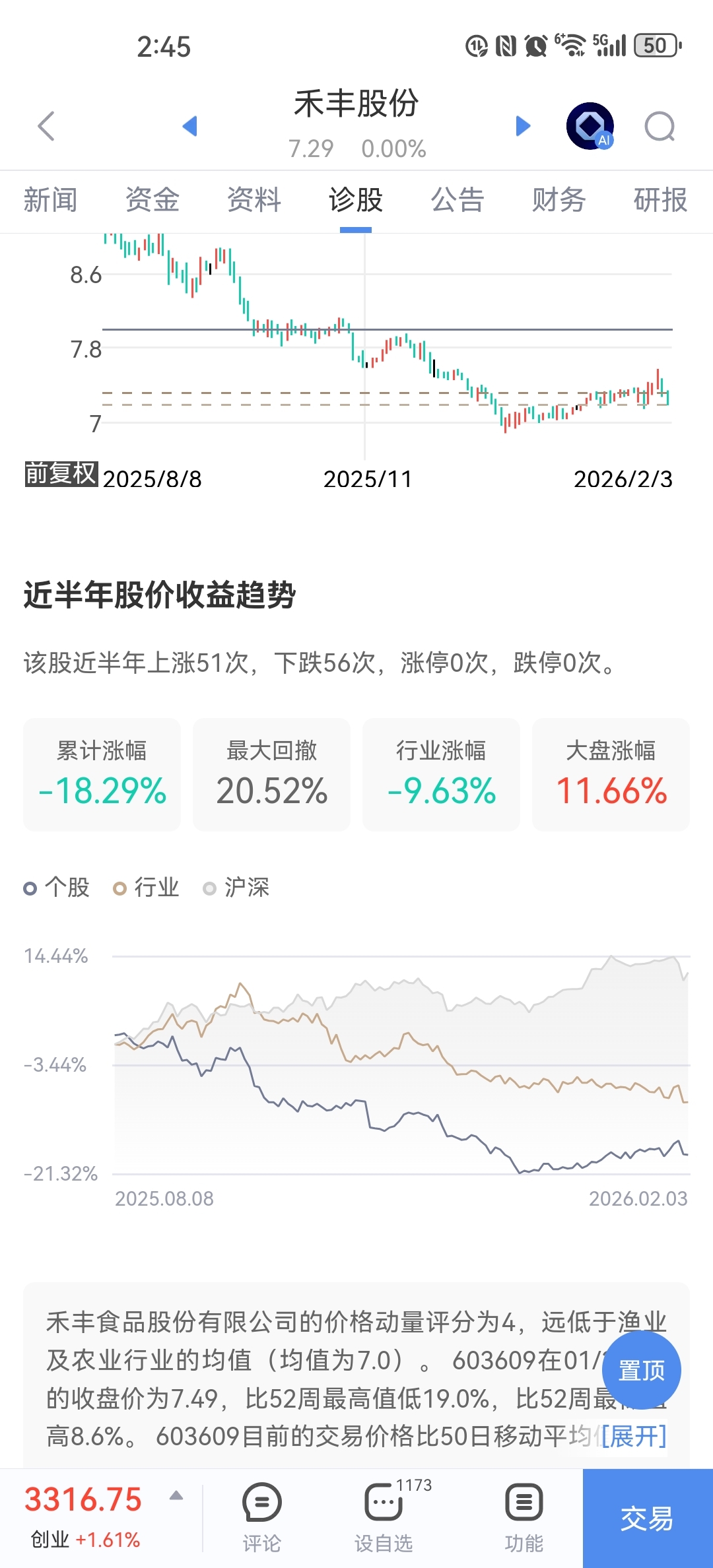 $禾丰股份(SH603609)$ 跑输大盘,跑输同行,常规操作