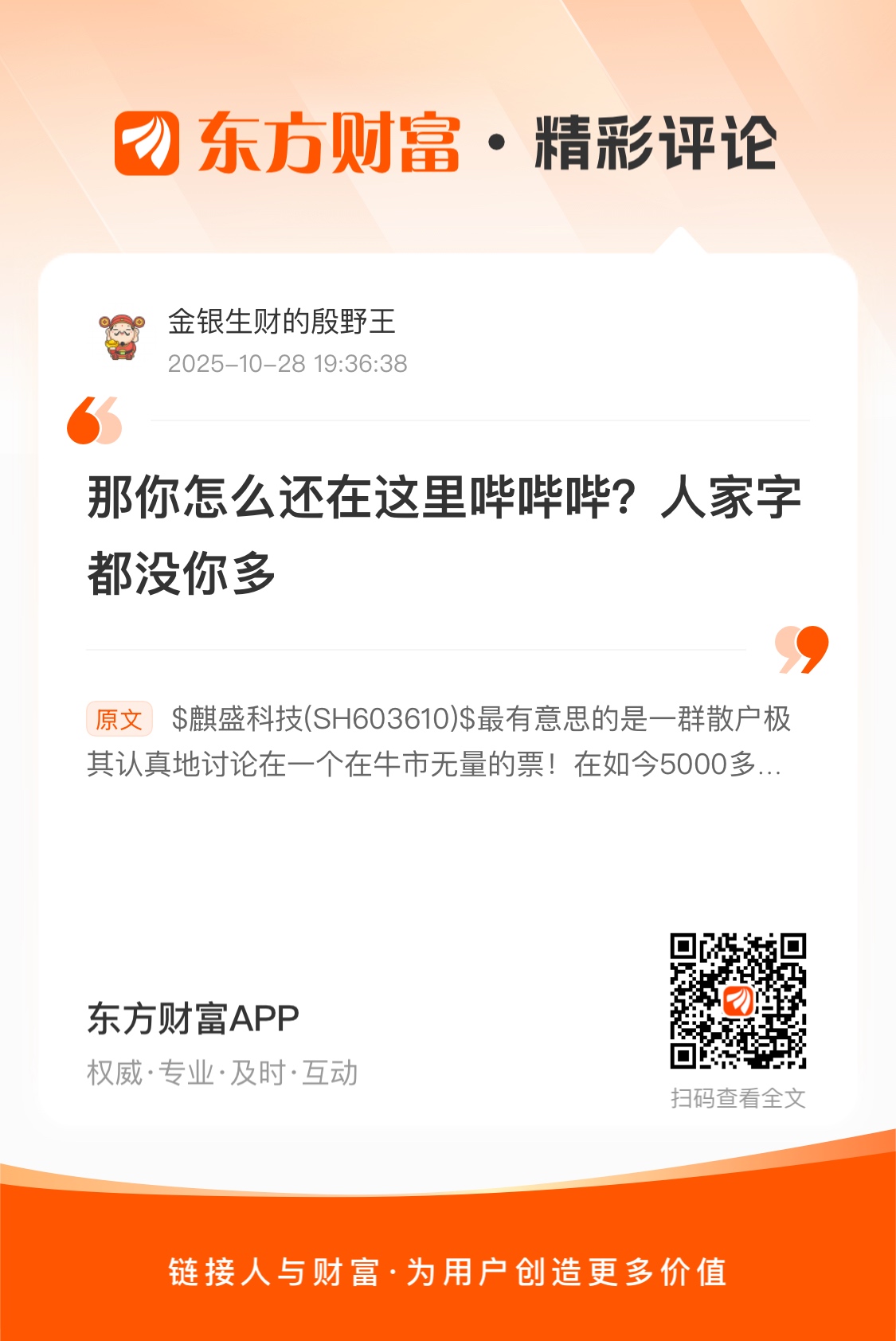阻止我回复,那我就给他回这里:你看我判断过涨跌么,咱只分析内在逻辑,看量看形态,但同时也看看你这样的小散的状态,对我来说是个很好的指标,有你这样的人,我觉得股吧里充满了乐趣…