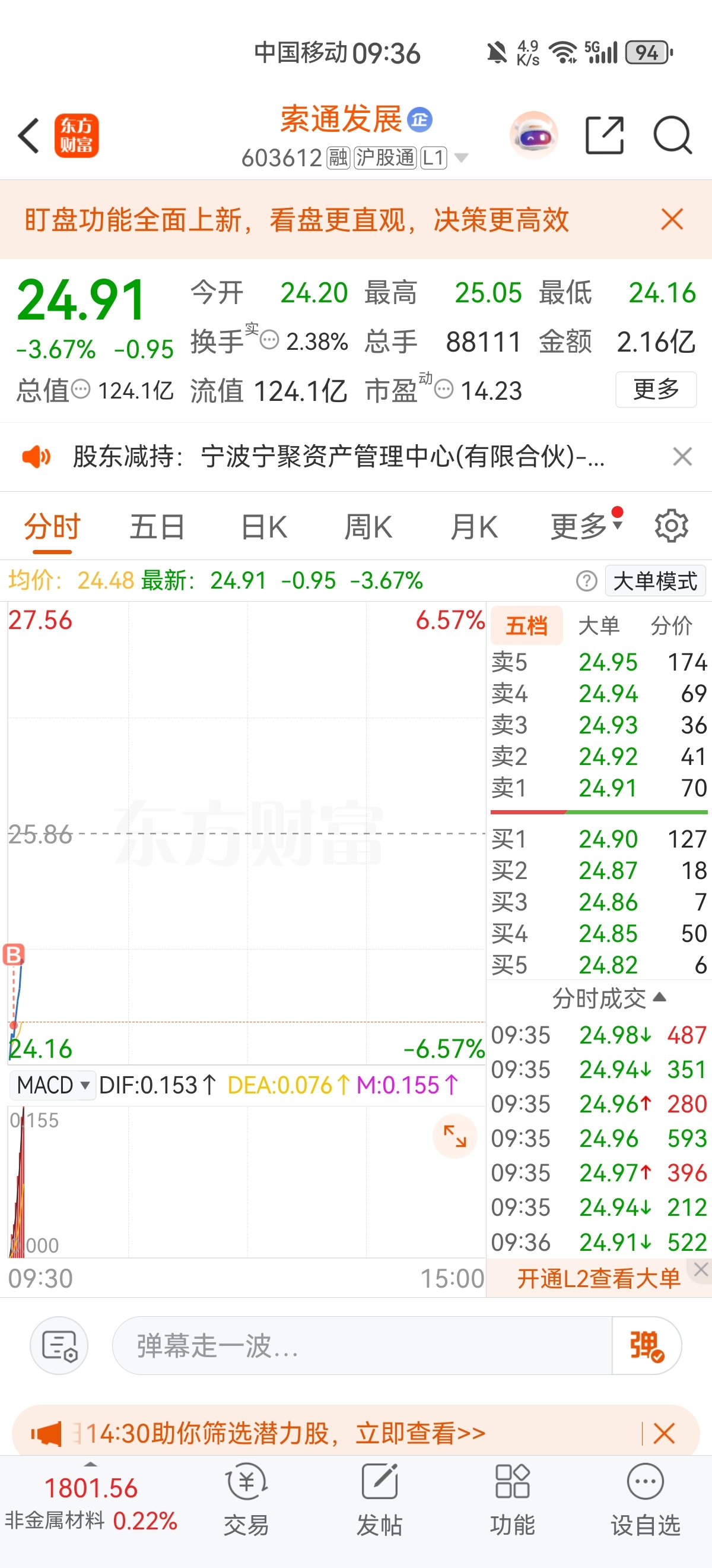 $索通发展(SH603612)$ 小索通的忠实粉丝,跌了就进来抢一笔,碰碰运气