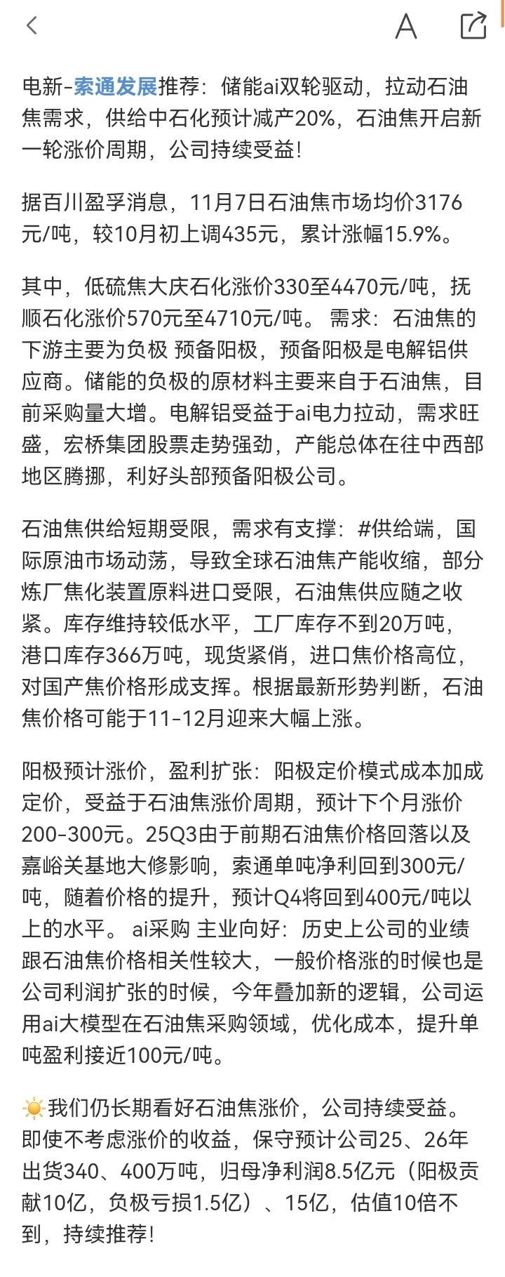 $索通发展(SH603612)$ 电新预测25年才只有8.5亿利润??如果只有8.5亿,那就是低于预期利空了