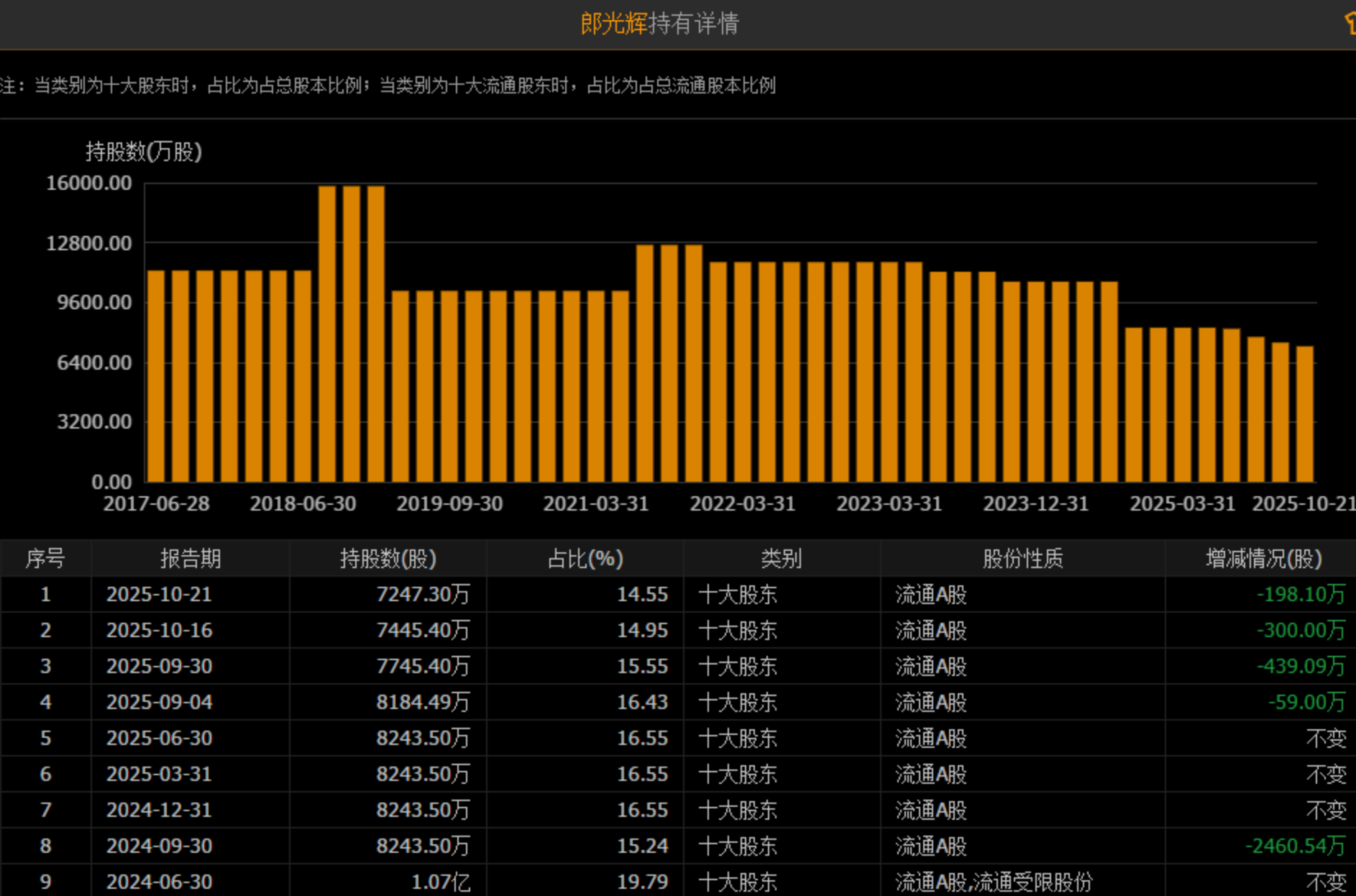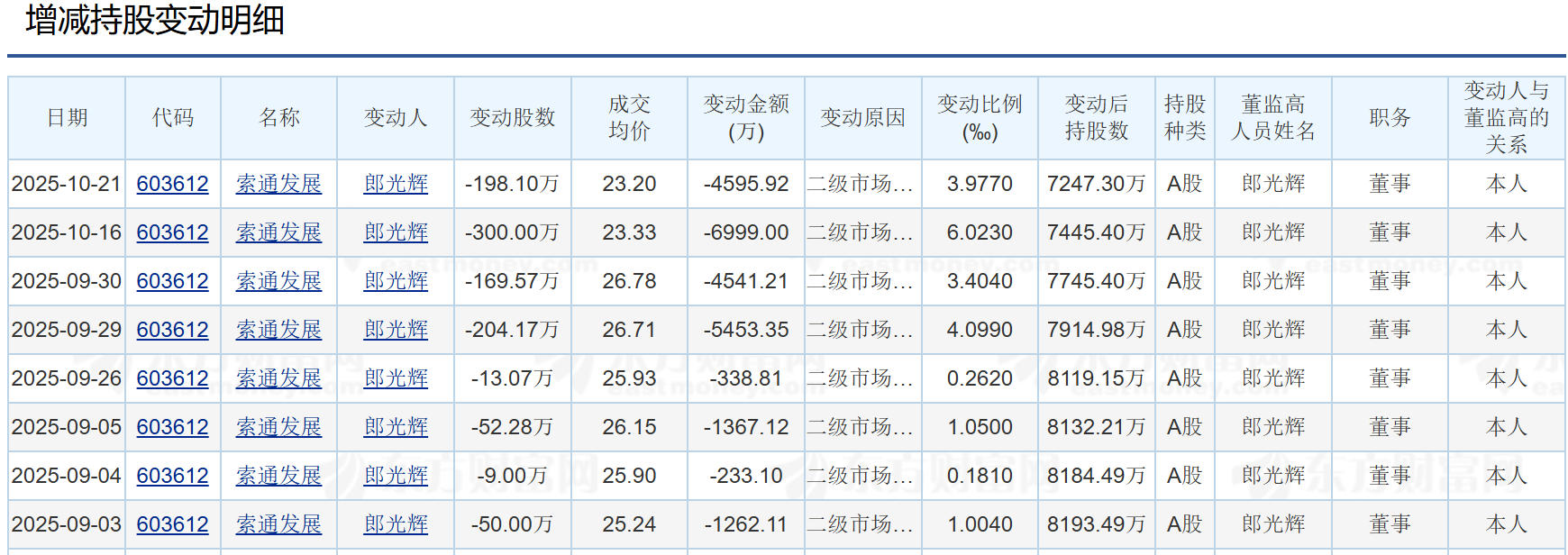 董事长郎光辉的减持记录。很多人在说索通前景如何如何向好,郎董却在不断减持,什么情况?