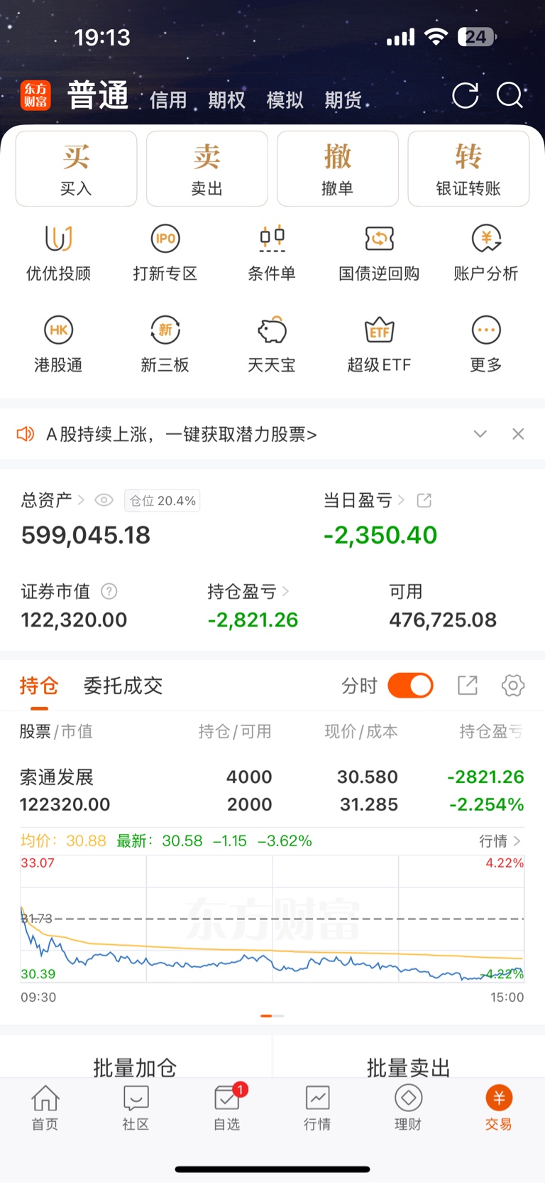 奇耻大辱啊。 我昨天投硬币选我自选里的任意一只都能赚。 这啥。 气死我了。 下午补了20手。 明日在跌还补。 我杠上了