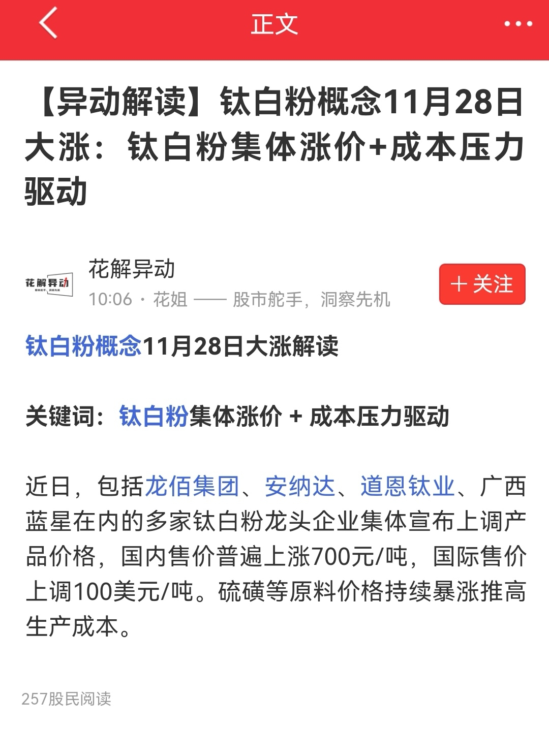 钛白粉涨价了
