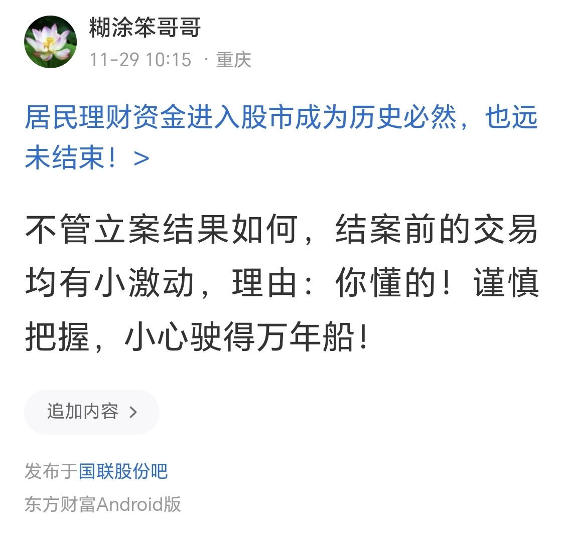 温馨提示: 1.根据《证券法》规定,禁止编造、传播虚假信息或者误导性信息,扰乱证券市场;2.用户在本社区发表的所有资料、言论等仅代表个人观点,与本网站立场无关,不对您构成任何投资建议。用户应基于自己的独立判断,自行决定证券投资并承担相应风险。《东方财富社区管理规定》
