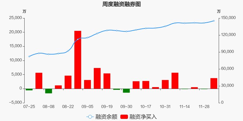 国联股份本周(2025/12/01-2025/12/05)累计涨幅达8.34%,截至12月5日最新股价报收30.00元。从增量上来看,12月1日至12月5日融资买入交易规模3.22亿元,融资偿还规模2.84亿元,期内融资净买入3751.53万元。从存量上来看,截止12月7日,国联股份融资融券余额14.54亿元,其中融资余额规模14.53亿元,融券余额规模123.6万元。