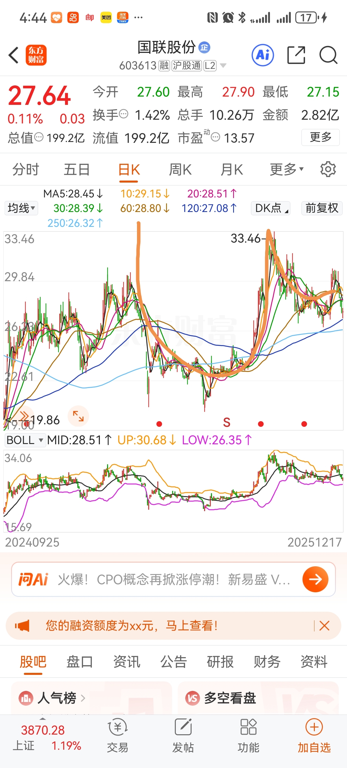 $国联股份(SH603613)$ 来个高手帮看一下。日线和周线都是杯炳吧?