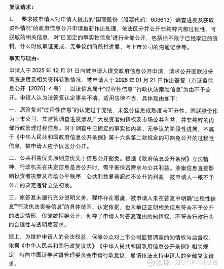 $国联股份(SH603613)$ 雪球这位投资者很专业的申请公开为维护申请人的合法权益,保障公众对上市公司监答调查的知情权 与监督权。人多力量大