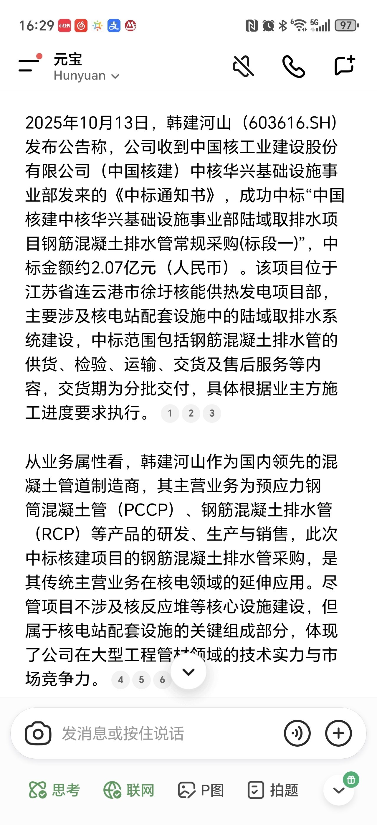 $韩建河山(SH603616)$ 中国核能科技全新突破!我国钍矿储量丰富 核能概念股表现强势。10月13日拿到核排水项目的2.07亿元合同,怎样添加核概念?