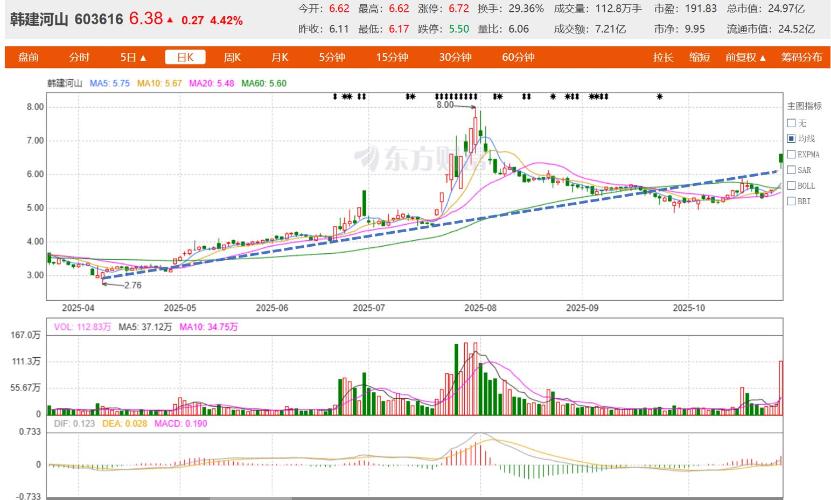 11月4日当日涨停的点位和之前的年度上升趋势线连接上了,之前的雅下水电水利工程那