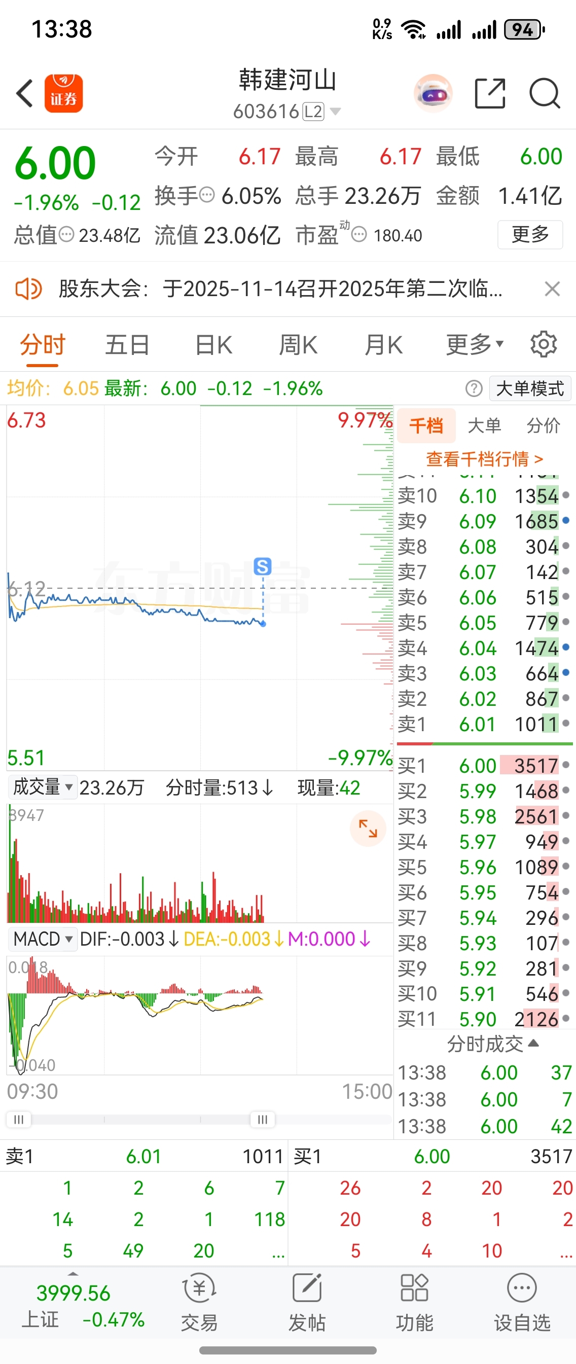 $韩建河山(SH603616)$ 对不起各位了,全清了,祝留下的发财。