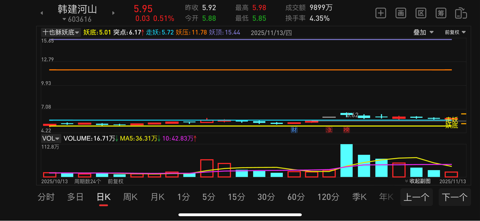$韩建河山(SH603616)$ #强势机会# #复盘记录# #炒股日记# #周末杂谈# #投资随笔# 个人记录$上证指数(SH000001)$