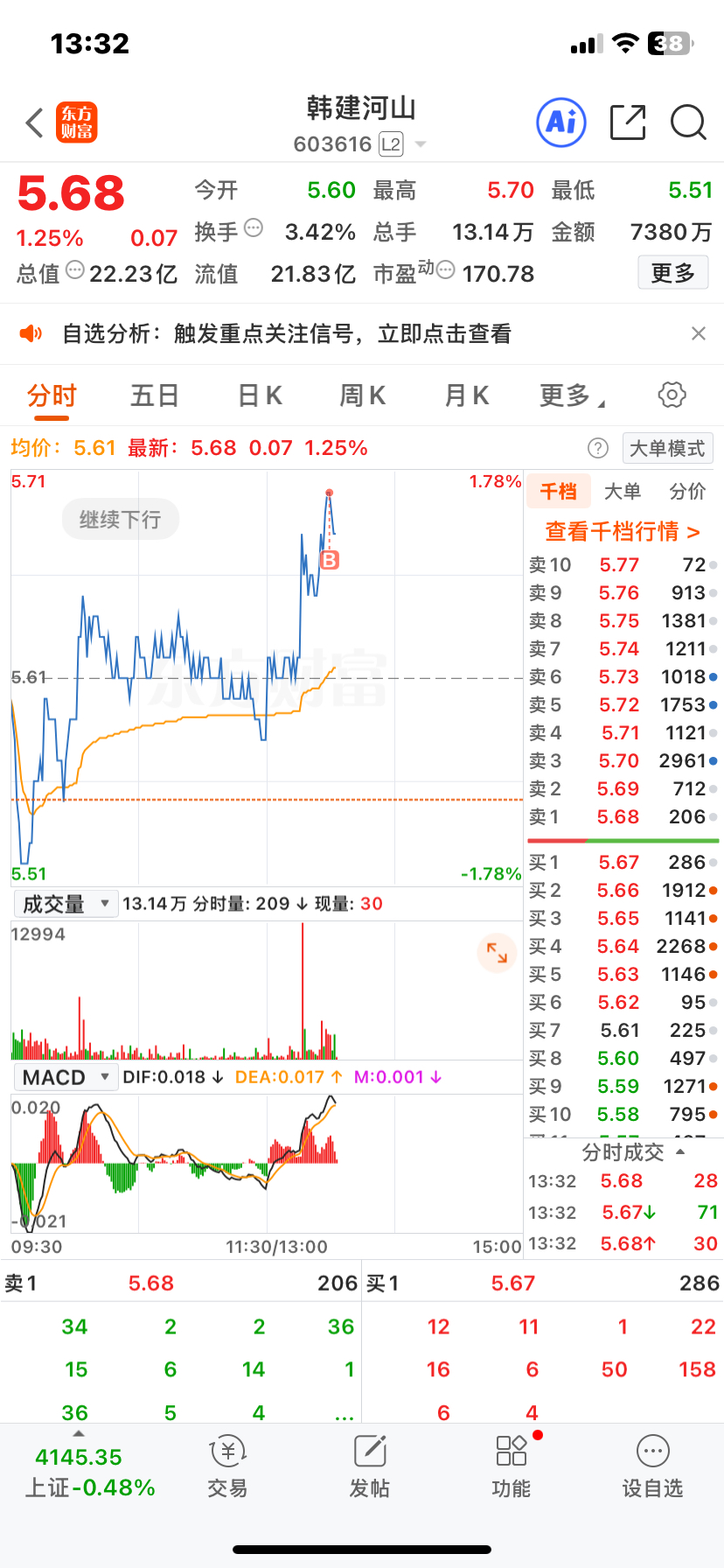 $韩建河山(SH603616)$ 不会把我挂山顶吧。