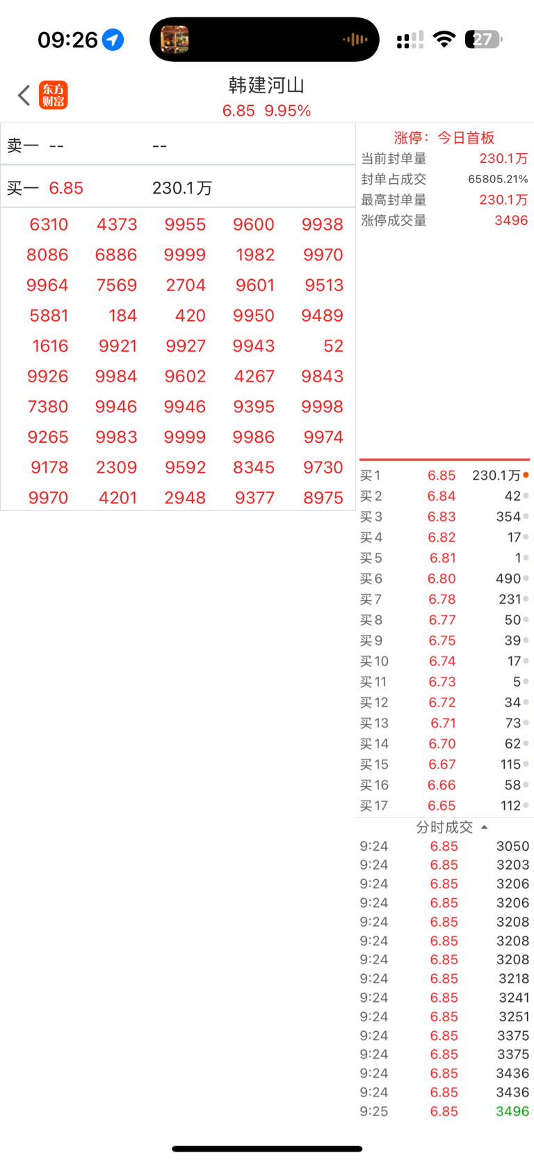 $韩建河山(SH603616)$ 可以都把钱拿回来了,都是大单子前排.今天漏不过两万的
