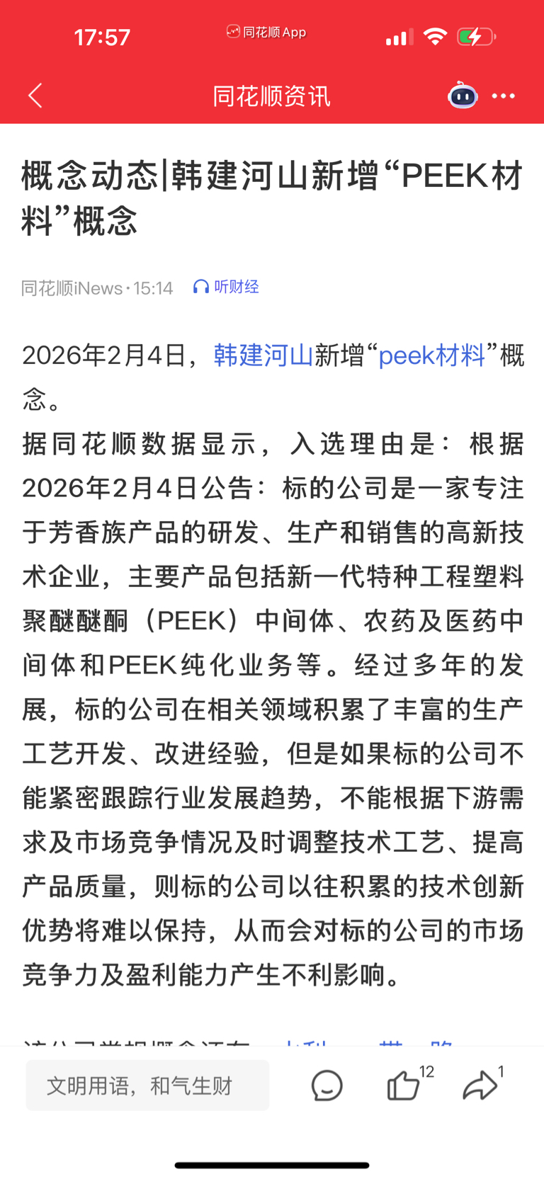 $韩建河山(SH603616)$ 同花已经新增peek 概念了