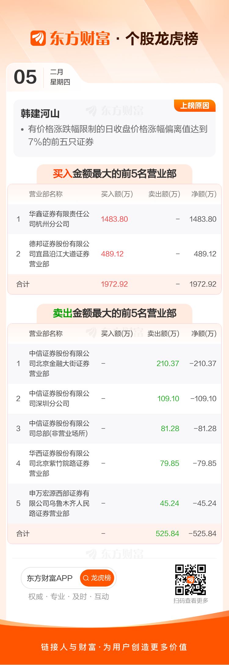 韩建河山(603616)龙虎榜数据(02-05)