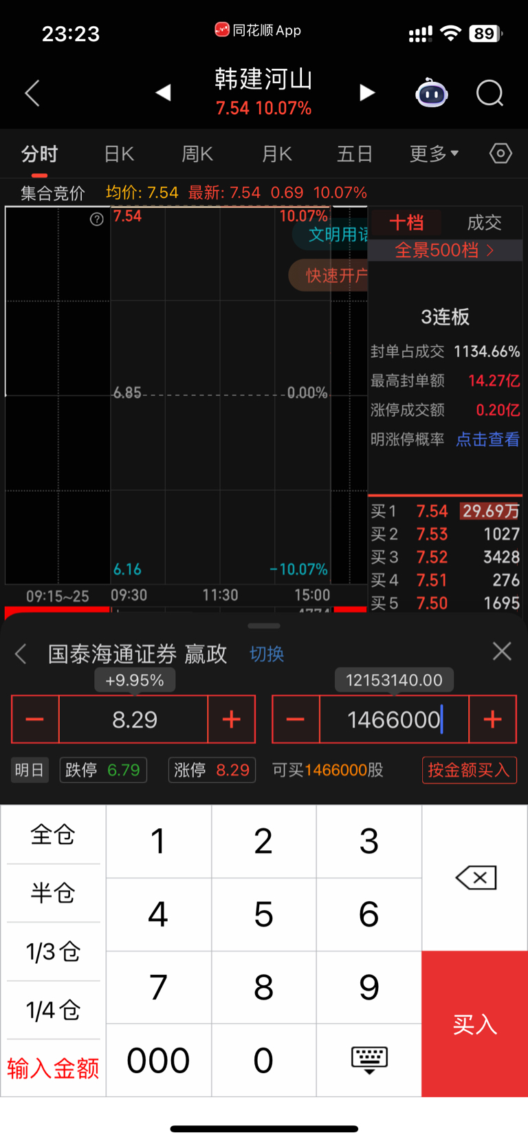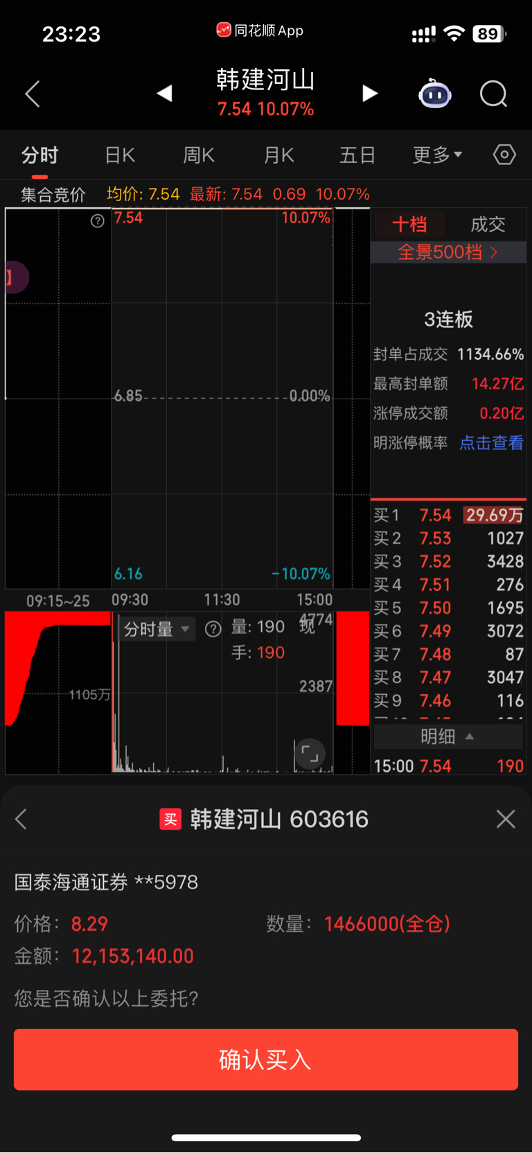 $韩建河山(SH603616)$ 明天有机会进来接盘吗