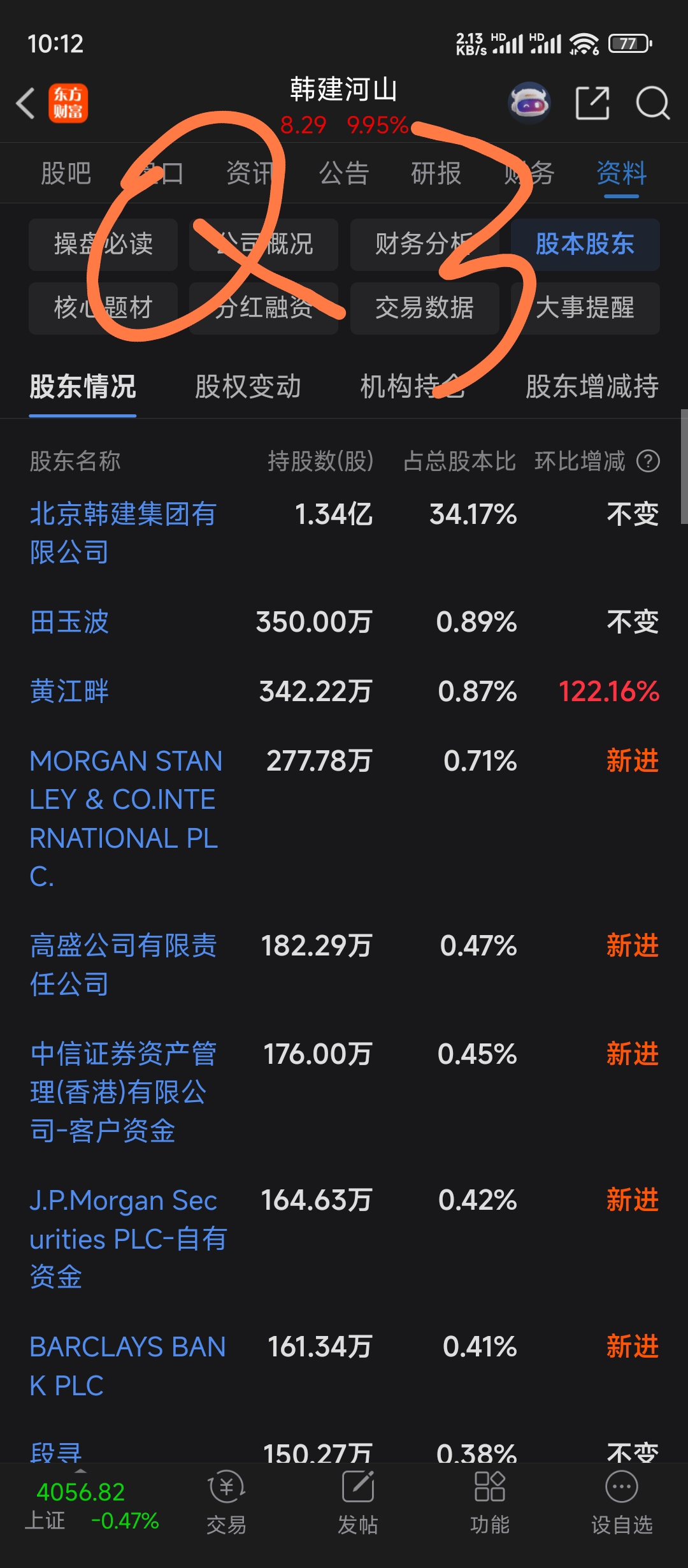 对比一下股东股本就知道了