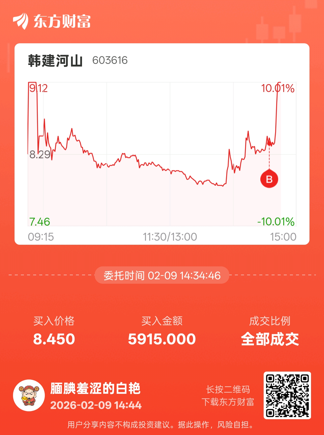 温馨提示: 1.根据《证券法》规定,禁止编造、传播虚假信息或者误导性信息,扰乱证券市场;2.用户在本社区发表的所有资料、言论等仅代表个人观点,与本网站立场无关,不对您构成任何投资建议。用户应基于自己的独立判断,自行决定证券投资并承担相应风险。《东方财富社区管理规定》