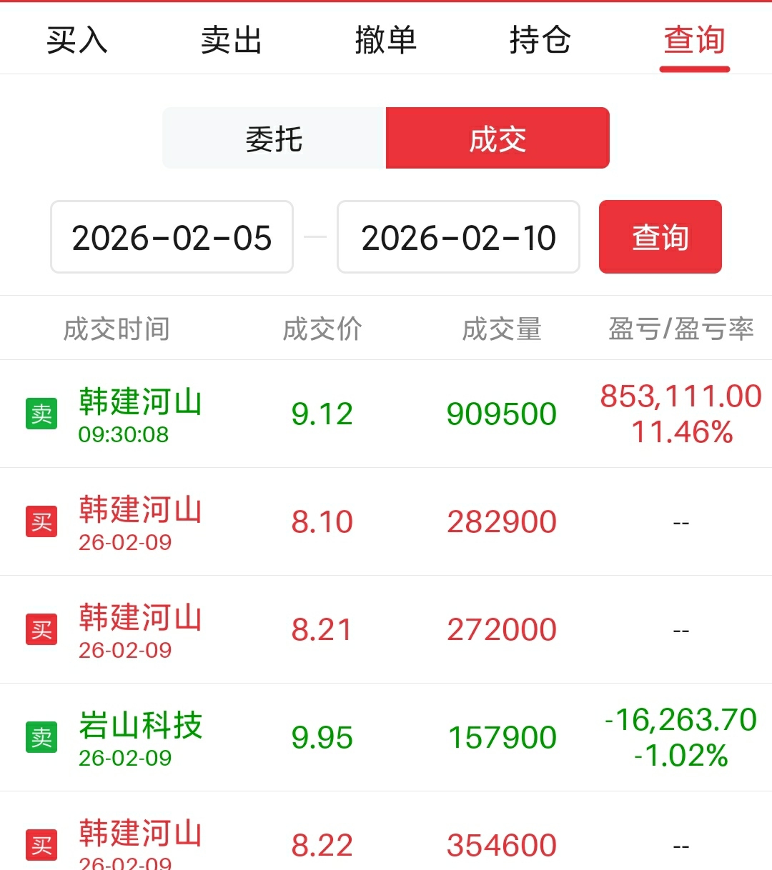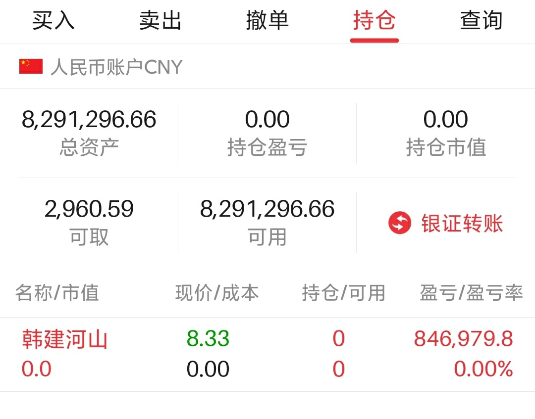 $韩建河山(SH603616)$ 各位!今天看到开盘价竞价不强,所以直接开盘价清仓卖了!暂时先不买股票了!这两天主要大家卖股票换现金过年!等一等休息了!