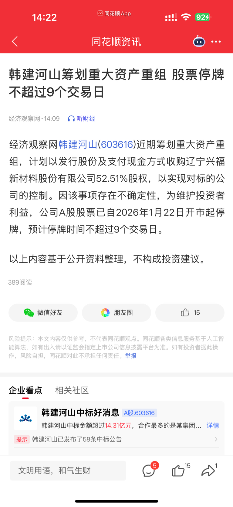 $韩建河山(SH603616)$ 你这是干嘛 炒冷饭啊