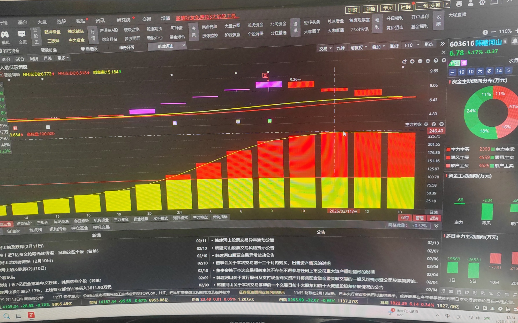 $韩建河山(SH603616)$ 红黄柱代表庄的仓位,这两天在减少,庄的多货多不多,并且建仓成本低,这两天才刚刚开始出,如果散户接盘,哪就继续下跌,让散户继续操,直到出完货,散户跟散户玩,别想着被套就补仓,庄比我们急,如果没人操底,庄就会选择再拉升后出货