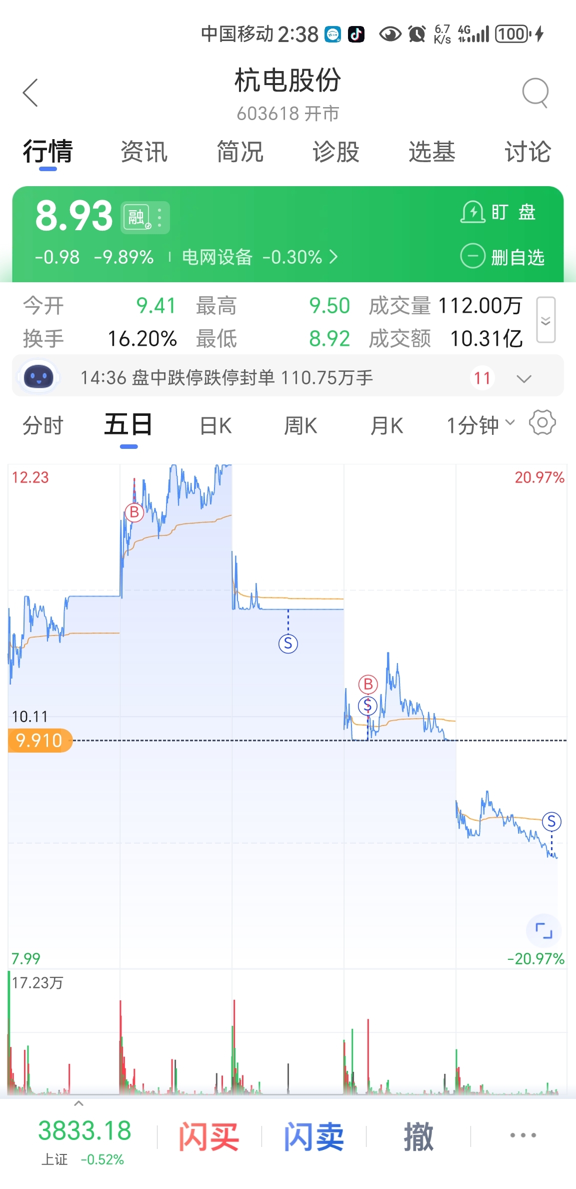 $杭电股份(SH603618)$ 血淋淋的教训,认了,各位勇士,记住高标勿追!!!