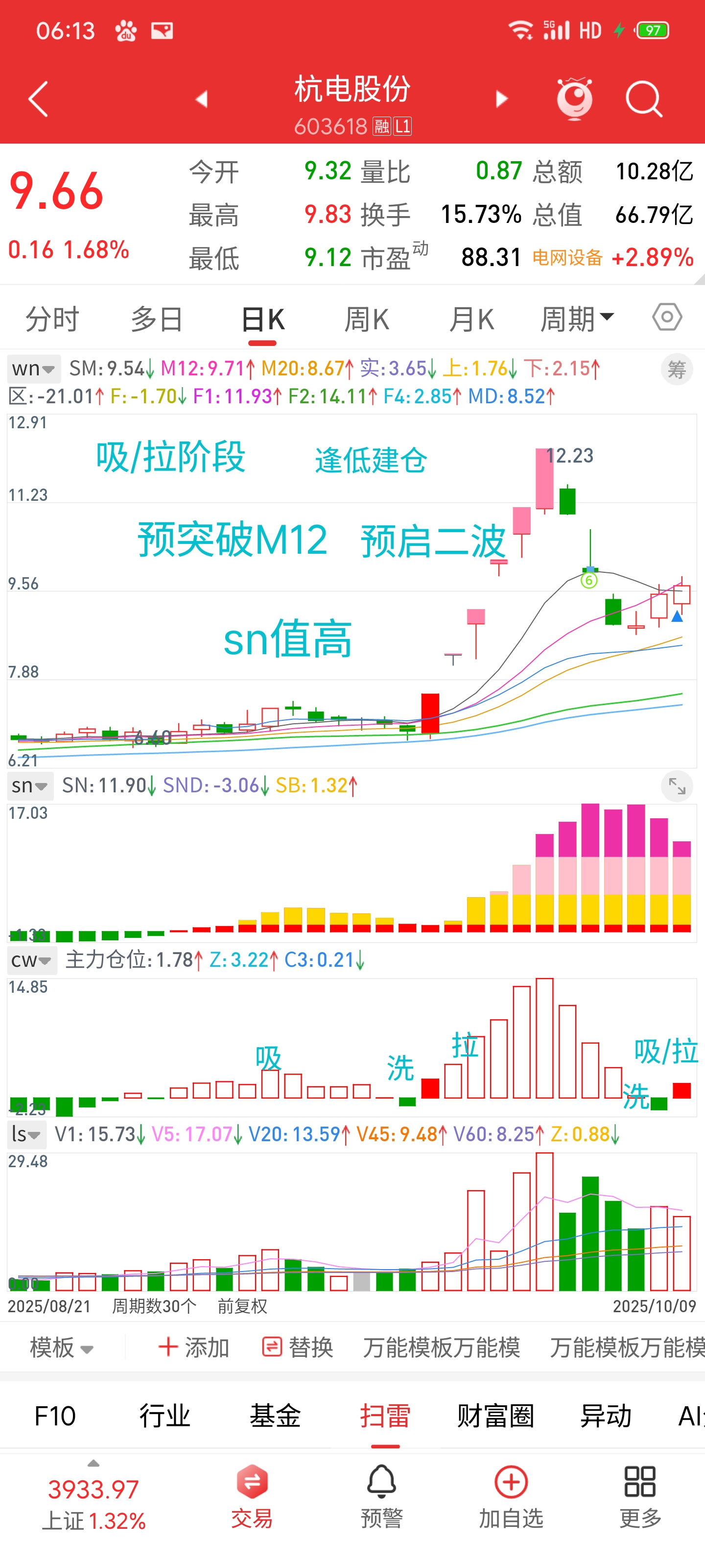 $杭电股份(SH603618)$ 走势挺好的就看今天能不能突破M12拉。突破的话肯定会拉。