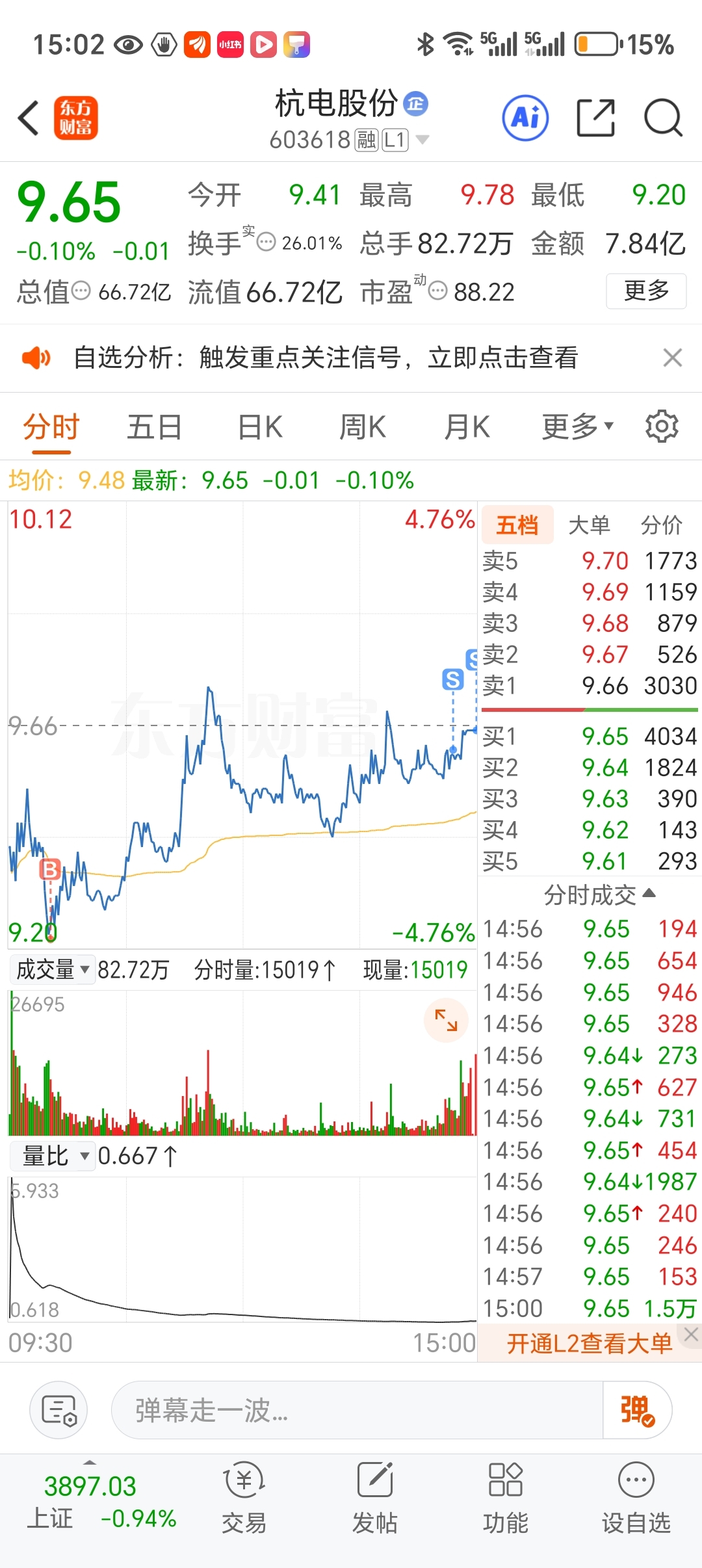 $杭电股份(SH603618)$ 怕周一低开 T的先卖了吧