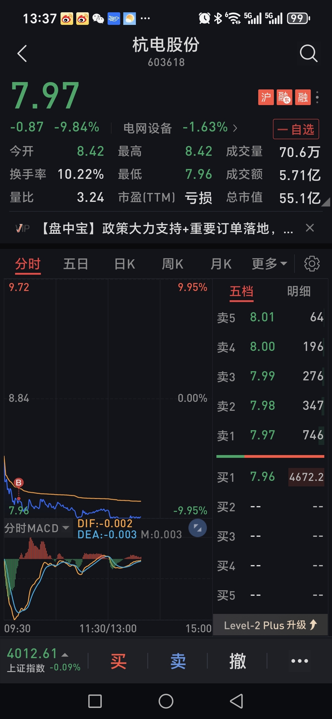 $杭电股份(SH603618)$ 满仓了