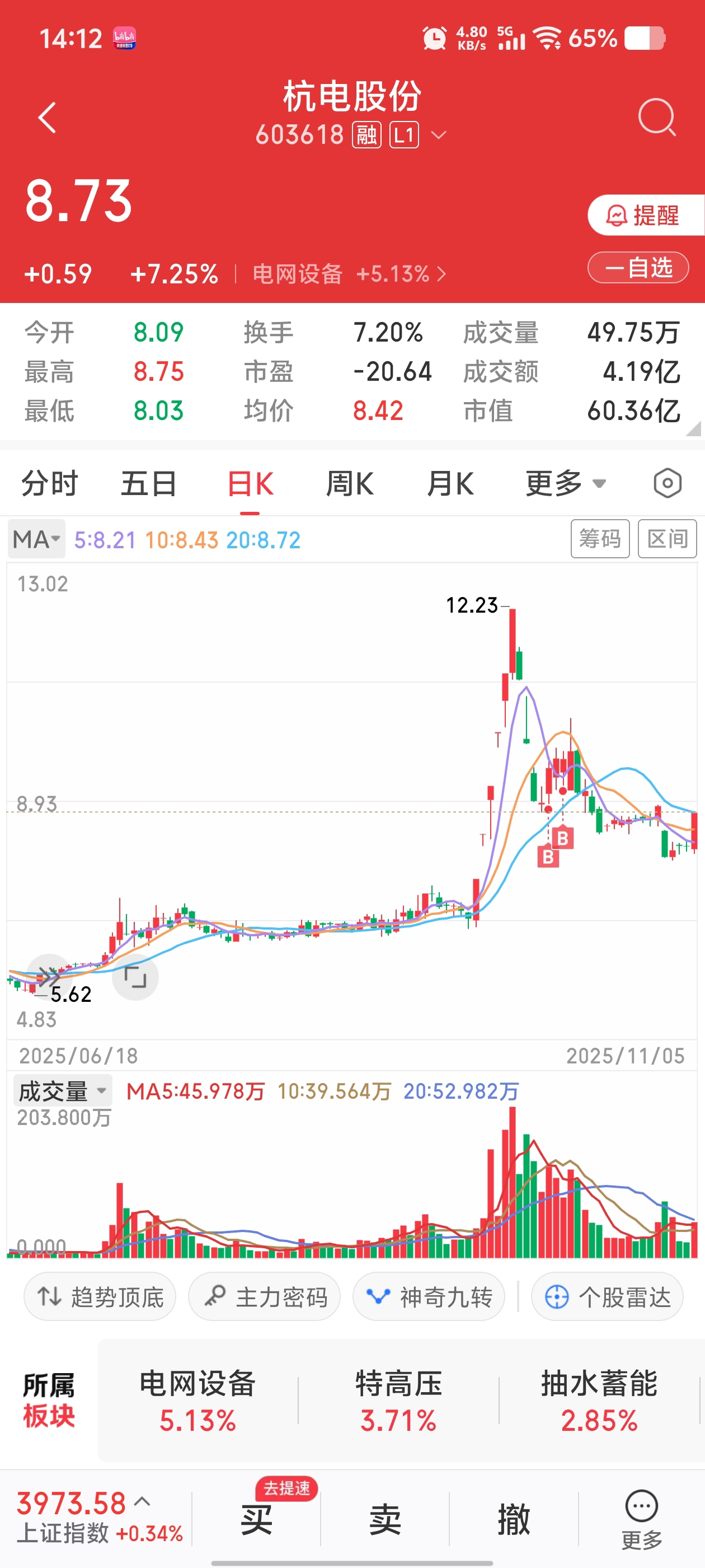 $杭电股份(SH603618)$ 9.4的本,看到希望了。