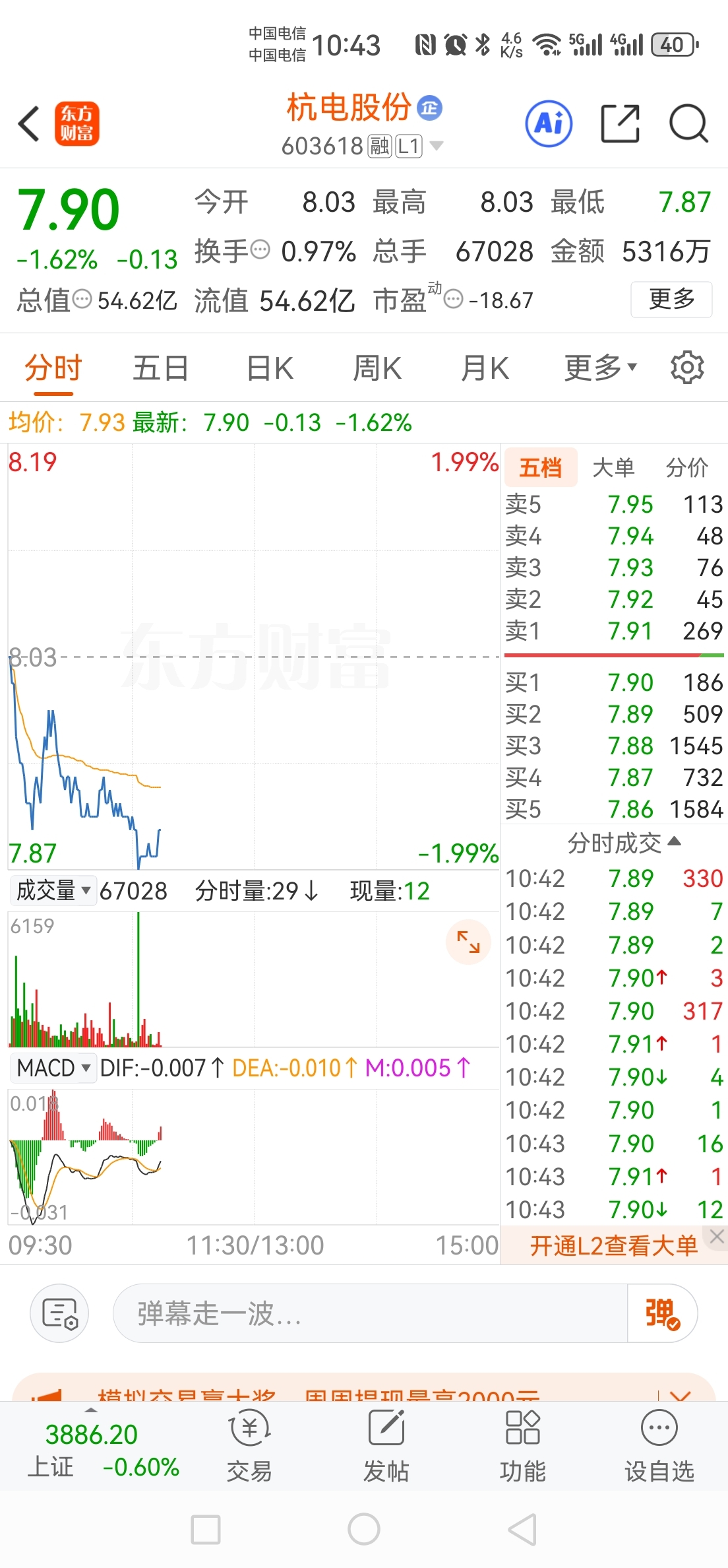 $杭电股份(SH603618)$ 这根绿线啥意思?