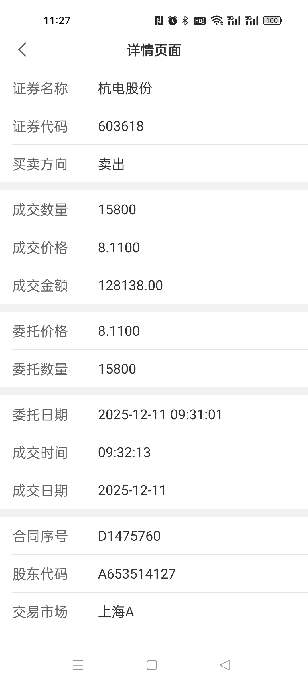 $杭电股份(SH603618)$ 今天卖了个绝逼高位,完美出局没亏钱