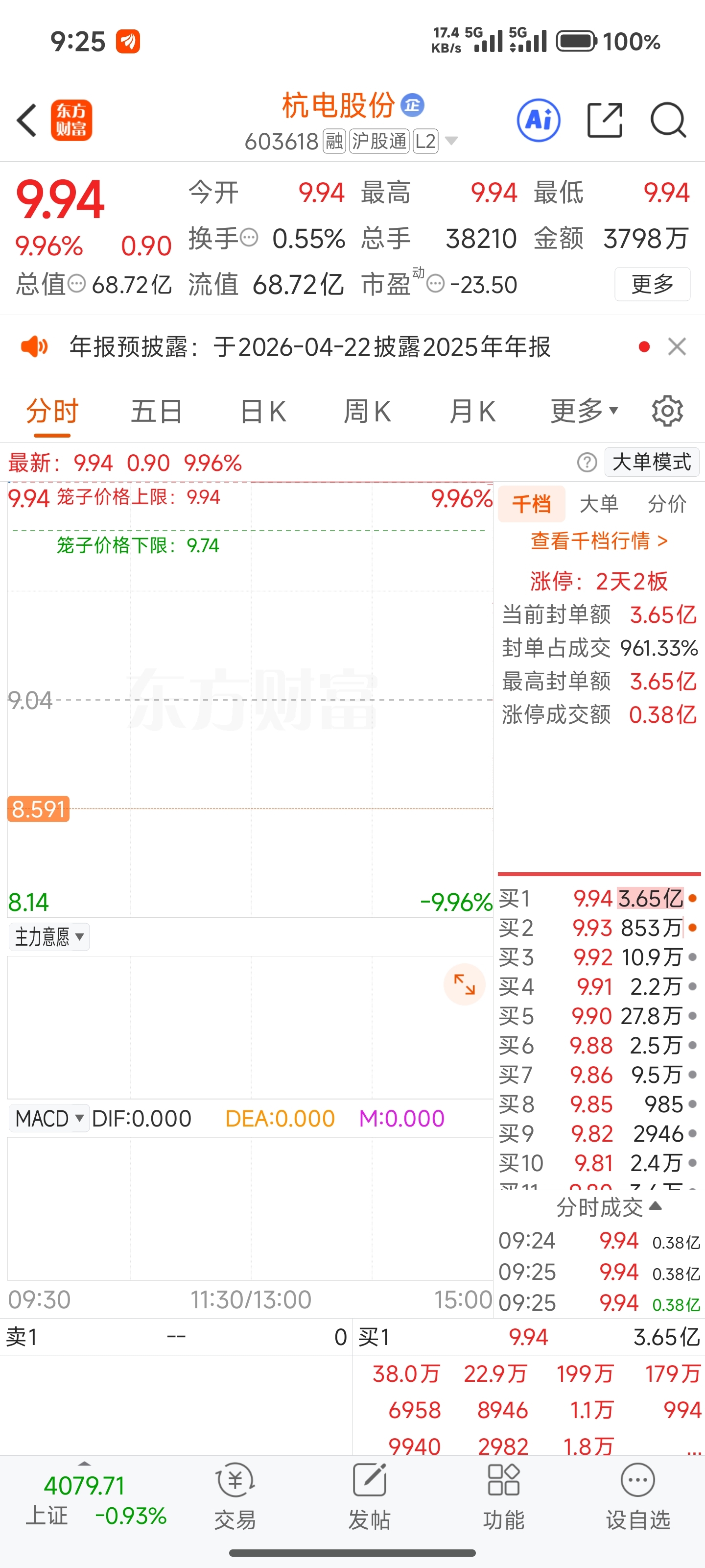 $杭电股份(SH603618)$ 超大的封单,超大的上涨空间,妖股启动
