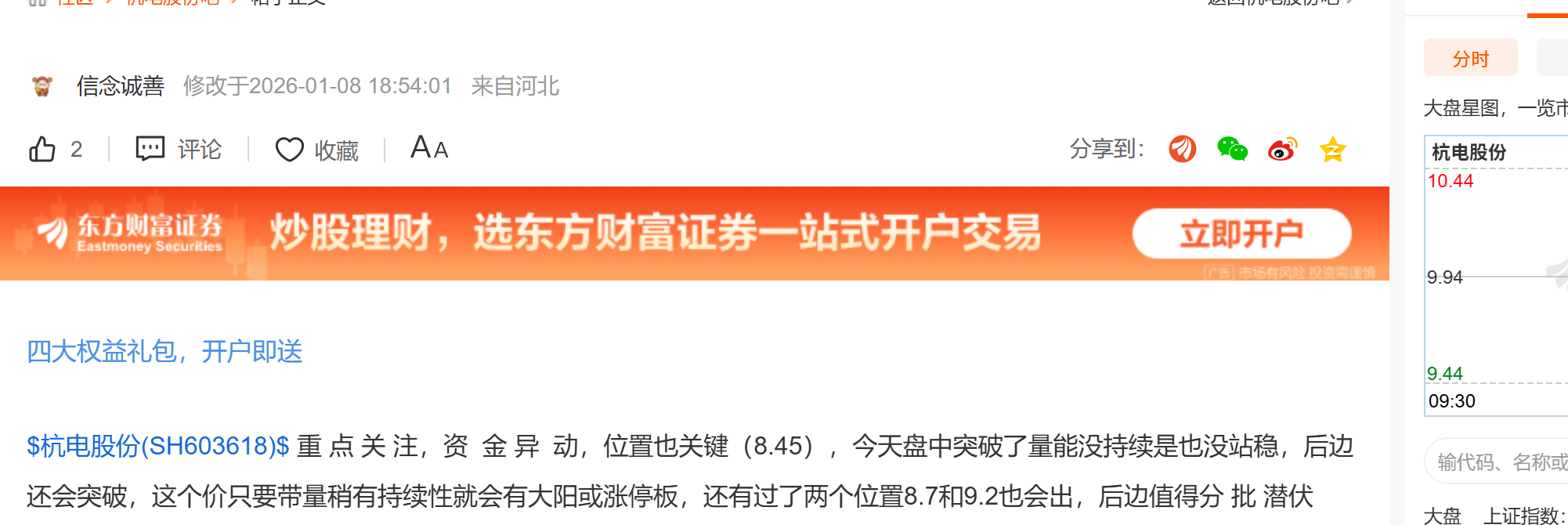 温馨提示: 1.根据《证券法》规定,禁止编造、传播虚假信息或者误导性信息,扰乱证券市场;2.用户在本社区发表的所有资料、言论等仅代表个人观点,与本网站立场无关,不对您构成任何投资建议。用户应基于自己的独立判断,自行决定证券投资并承担相应风险。《东方财富社区管理规定》
