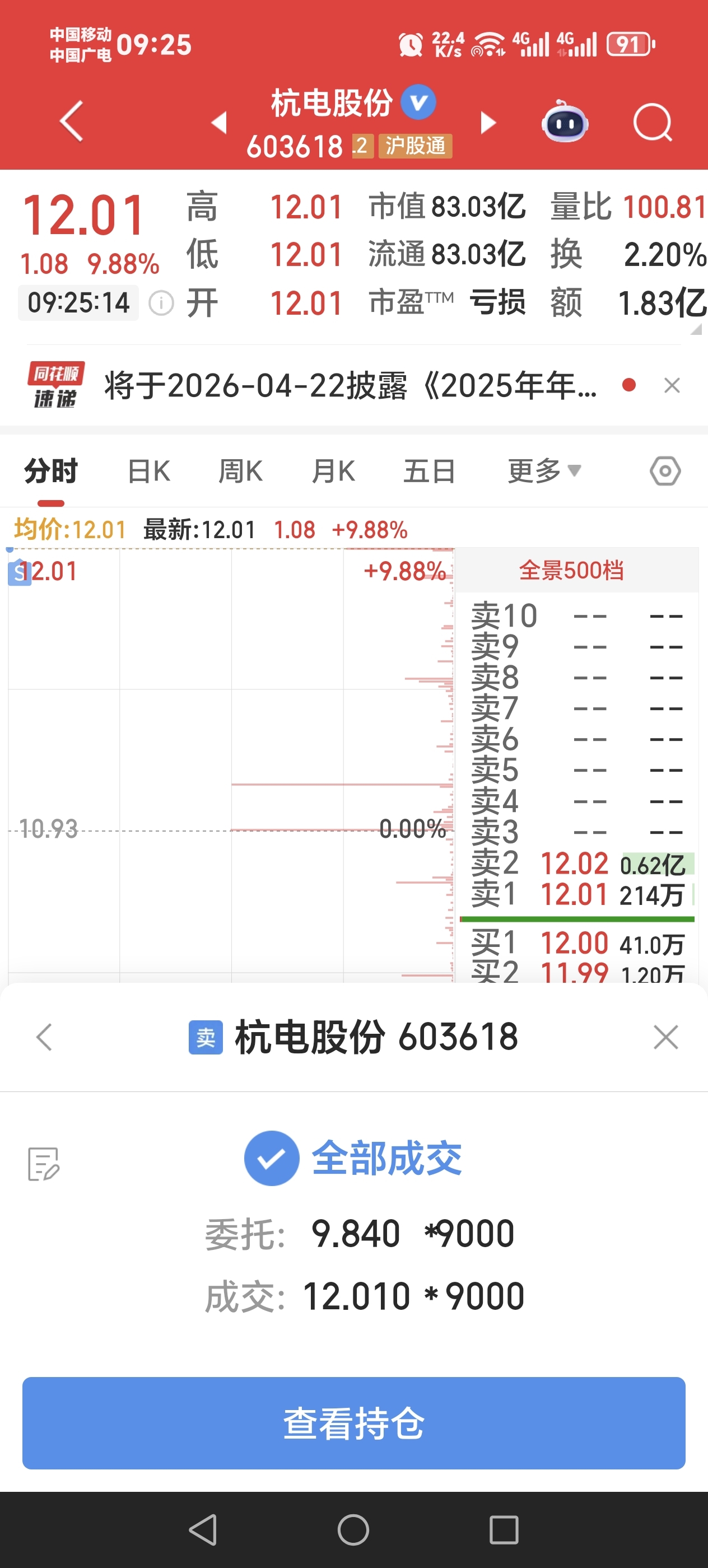 $杭电股份(SH603618)$ 兄弟们,我走了