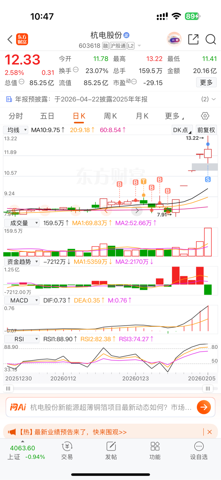 $杭电股份(SH603618)$ 还是那句话:我真的是一个天才!