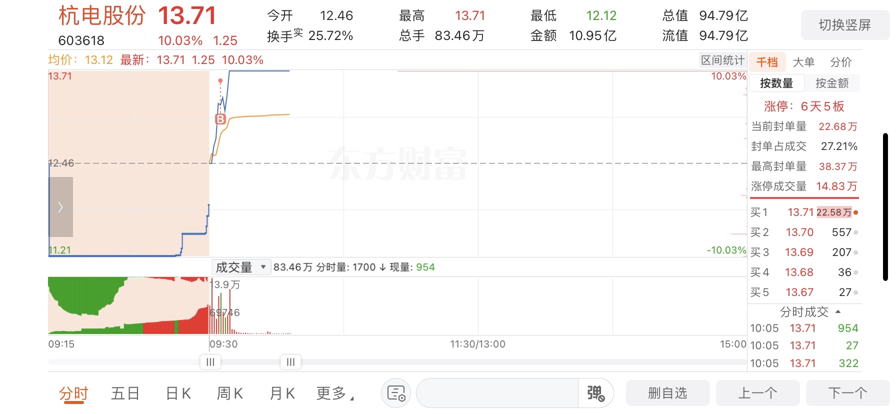 $杭电股份(SH603618)$ 主力大好人,还以为要被挂上了,感谢大佬带我吃肉,不要埋我