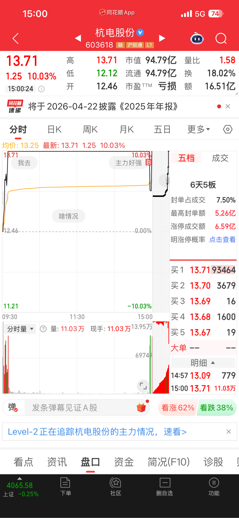 $杭电股份(SH603618)$ 大佬都敢炸,胆子太大了